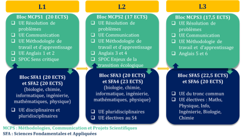 - de se spécialiser progressivement, par le jeu d'UE électives, en fonction de leurs projets de poursuite d'études (en master ou en école d'ingénieur).