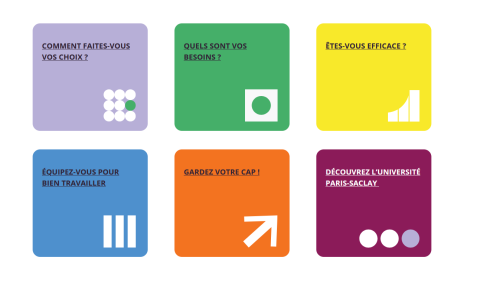Le parcours s’articule en plusieurs étapes : d’abord mieux se connaître, identifier ses besoins et motivations, puis s’initier aux méthodes de travail universitaire, avant de découvrir l’environnement de l’Université Paris-Saclay.